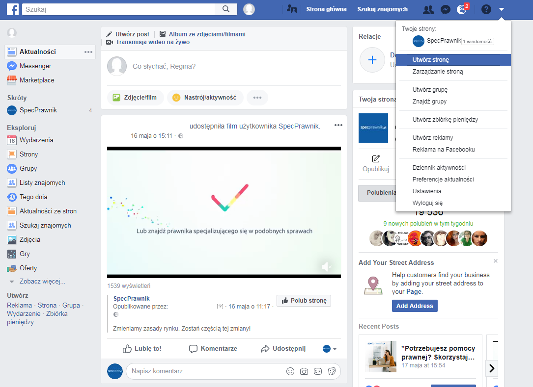Wróćmy do źródła. Dużo piszemy o mediach społecznościowych. O trendach . O tym co publikować na fanpage’u firmy . Jakie narzędzia wykorzystywać ( Canva , GIF ). O kontencie . I o skracaniu linków . Zrobiliśmy Wam wprowadzenie do Facebooka , opisaliśmy zasady dobrego profilu prawnika , a nawet podaliśmy poszczególne wymiary grafik . W tym wszystkim chyba zapomnieliśmy o najważniejszym (chyba – bo wielu z Was nadal swoich stron na Facebooku nie ma). Czy wiecie jak w ogóle profil firmowy założyć? Zajmie to zaledwie kilka minut!